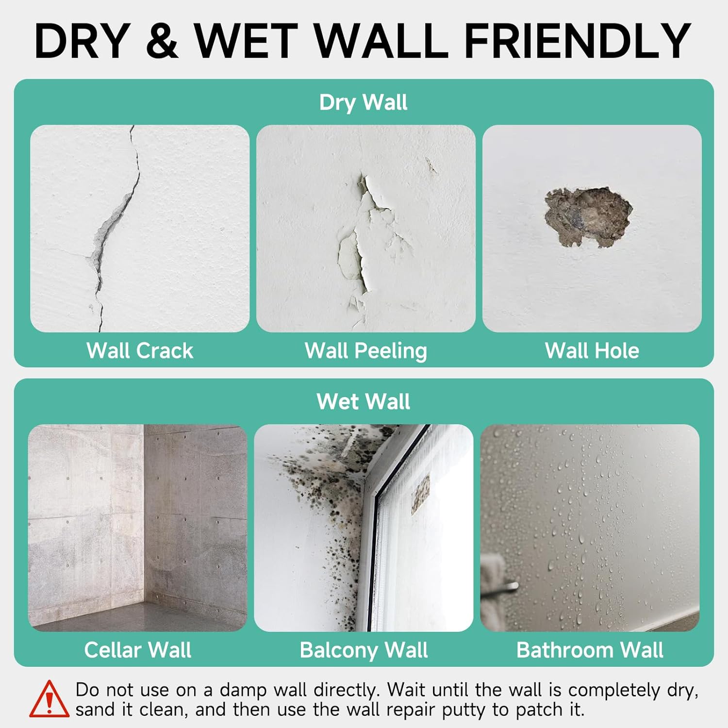- WATERPROOF FORMULA - Our wall repair putty features fully sealed waterproof performance, maintaining excellent results even in damp areas like basements, warehouses, balconies and bathrooms. No shrinking, cracking or streaking after drying. The repaired area becomes virtually invisible after painting, leaving walls with a flawless finish.