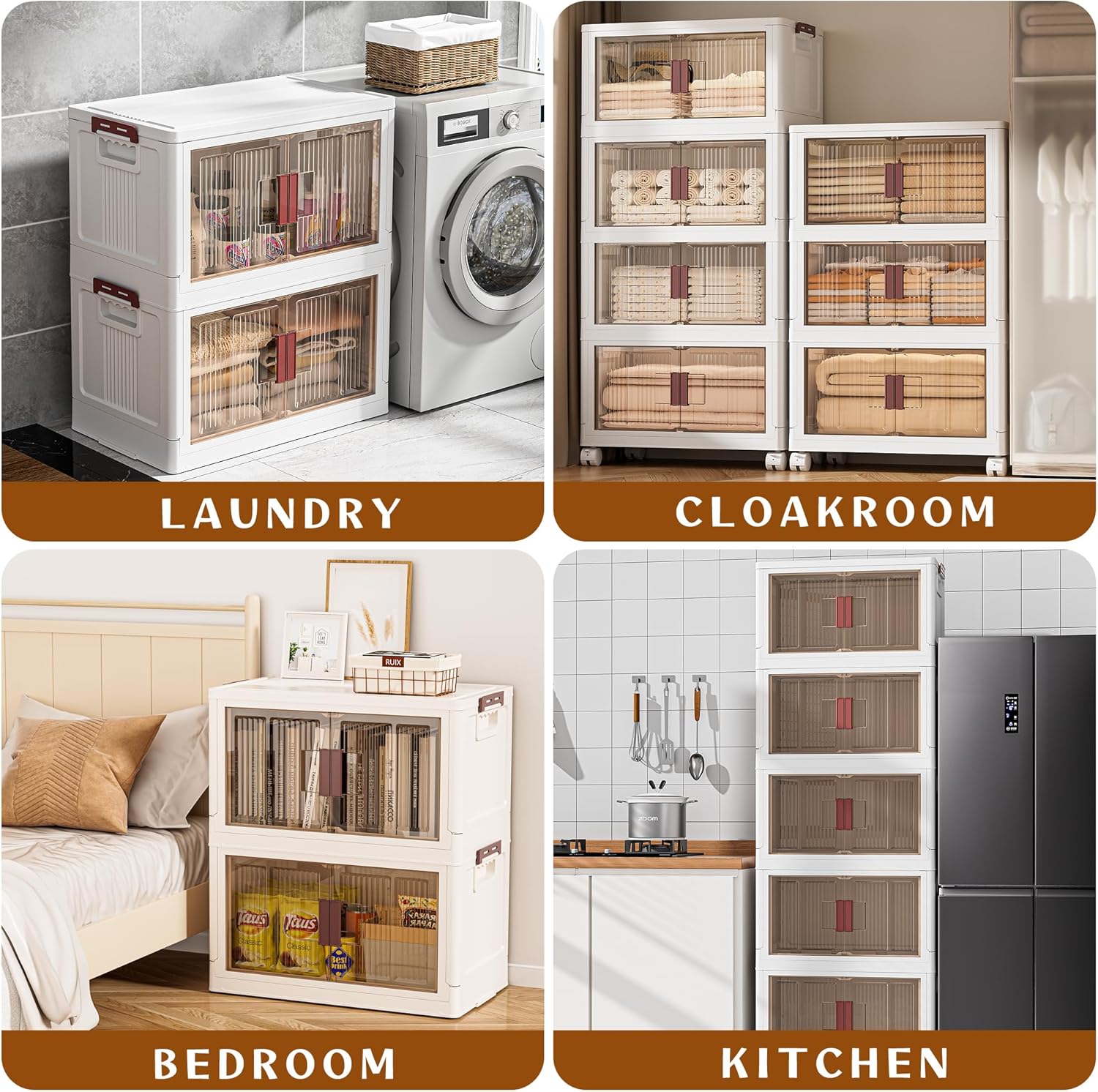 - Foldable, Stackable, and Mobile: Our storage containers can be easily folded in four simple steps when not in use, making them compact and storage-friendly in any space. Each bin features special grooves on the top and bottom for secure stacking and four rotating wheels. In addition, 2 wheels of the storage shelves have clasps that hold the locker in place to prevent it from moving.