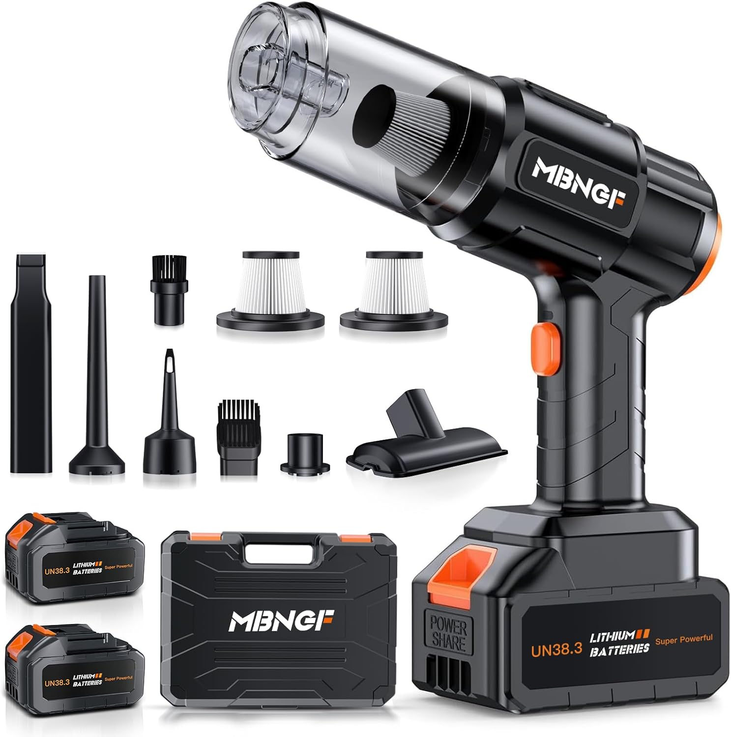 - 【Portable and Cordless Design】 The portable and cordless design of the MBNGF X9 ULTRA car vacuum makes it easy to maneuver and use anywhere. It provides convenience and efficiency in cleaning your car, home, or office.