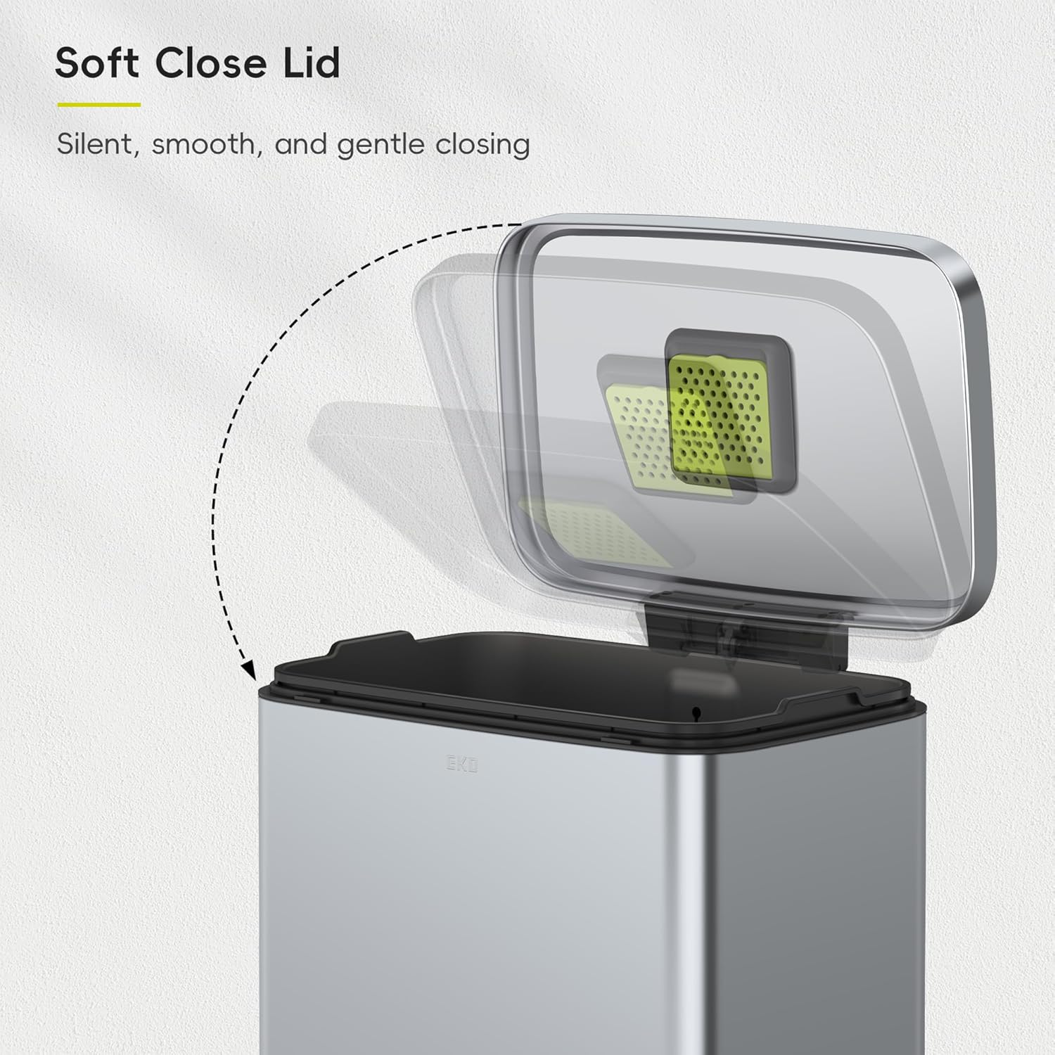 - Whisper-quiet Closing - The rugged step pedal mechanism is built to withstand years of daily use, and the bi-force damper soft open and close lid prevents slamming and banging.