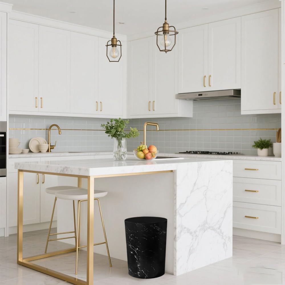 - Chic Marble Aesthetic:Featuring stylish marble - like patterns, this plastic trash can brings a touch of elegance to your space. It effortlessly matches various interior styles, from modern to classic.