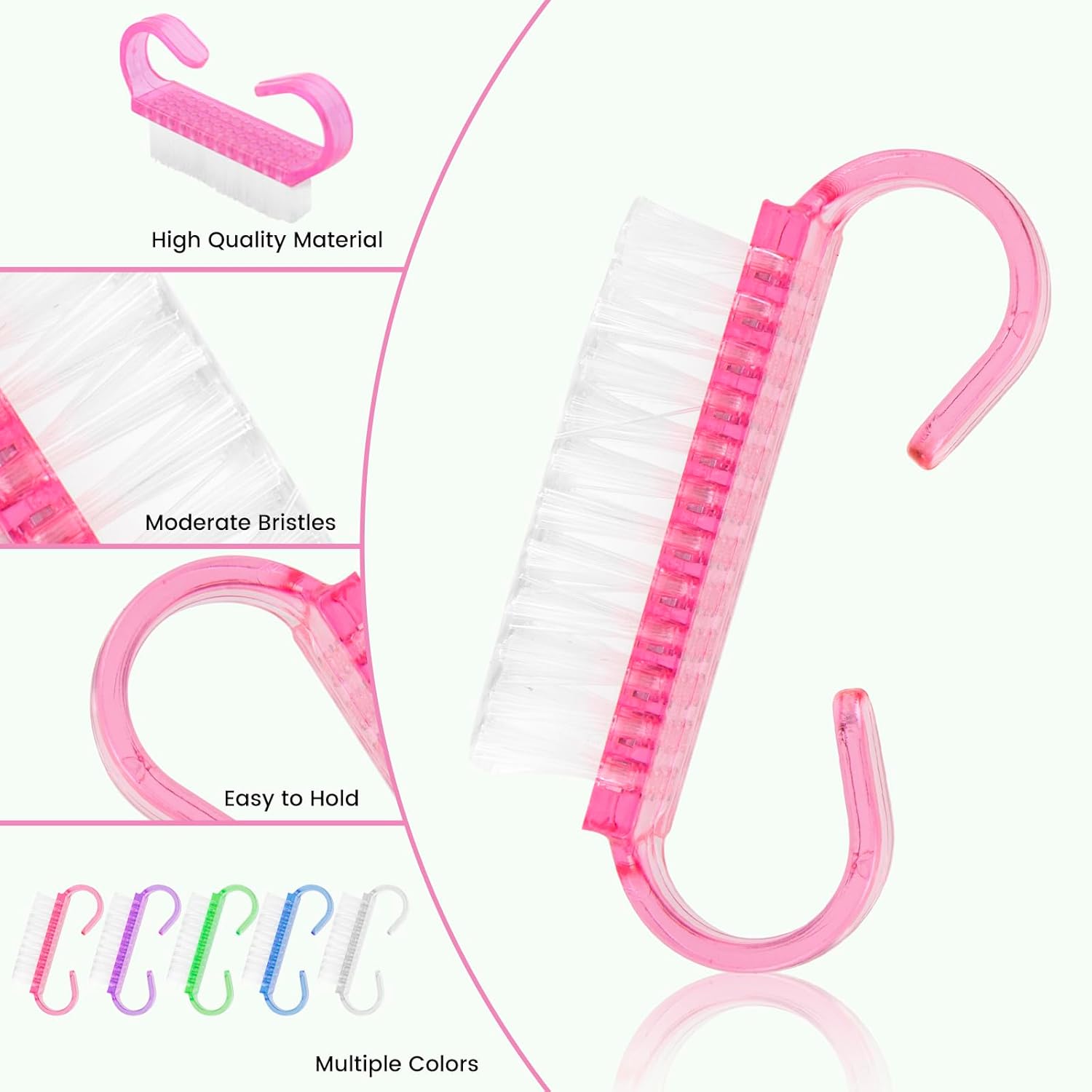 - Skin-Friendly Material – Made of sturdy plastic with flexible bristles that are neither too hard nor too soft, our handle grip nail brushes provide effective cleaning without scratching the skin, safe for adults and children.