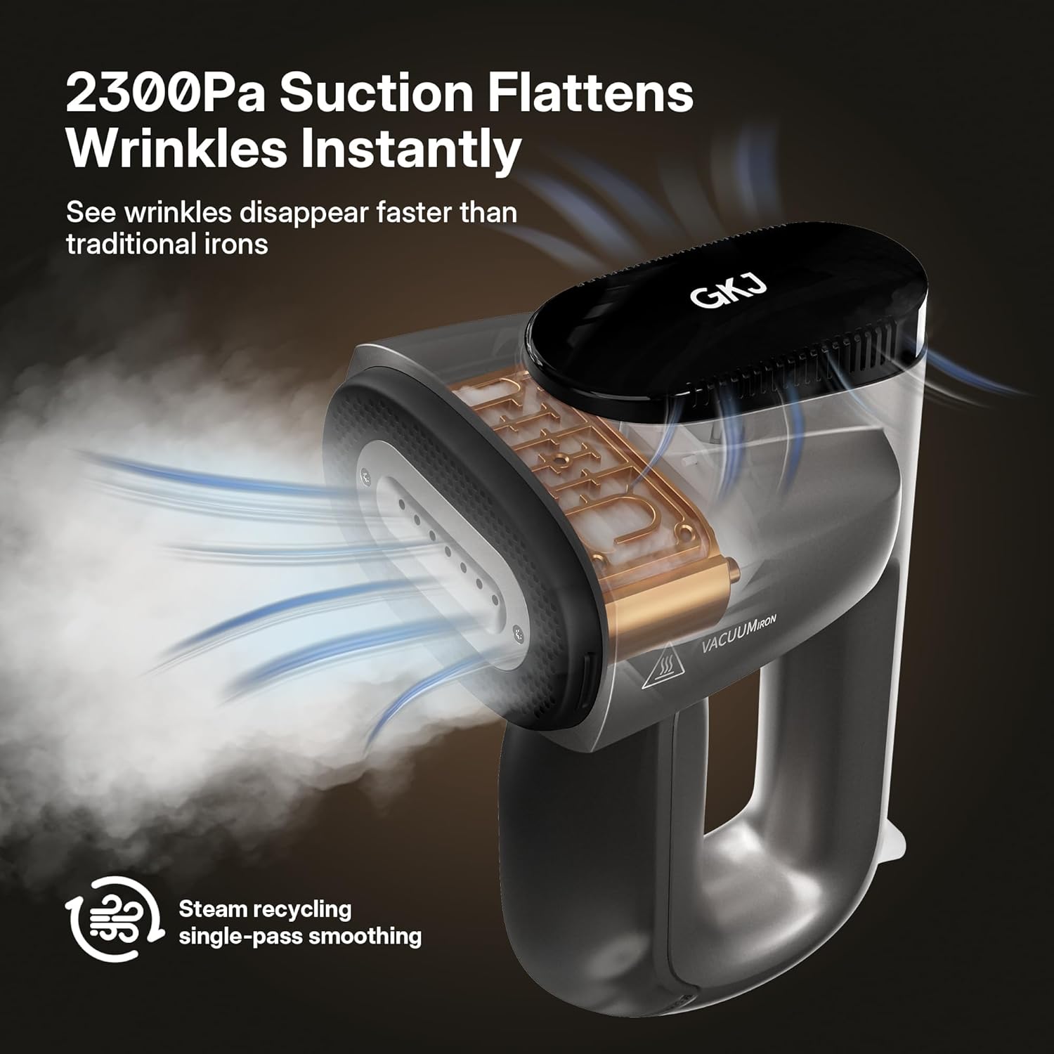 GKJ Steamer for Clothes, Handheld Vacuum Steamer 2300 Pa Suction, Portable Travel Steamers for Clothes, Steaming & Ironing 2 In 1, Auto-Grip, Removes Wrinkle