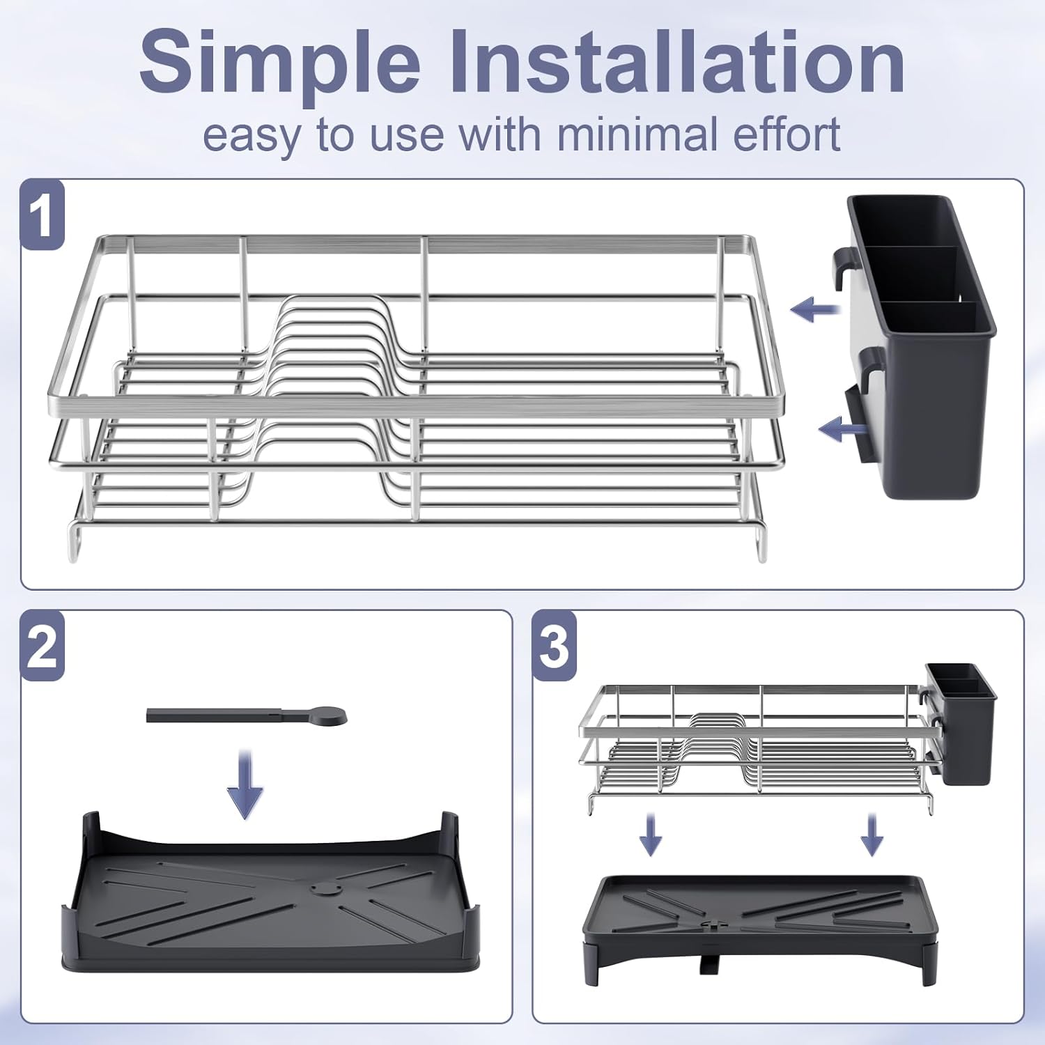 Dish Drying Rack,Rustproof Stainless Steel Dish Rack for Kitchen Counter,Dish Drainer with Cutlery Holder and Removable Drainboard,16.5" D x 11.8" W x 6.29" H