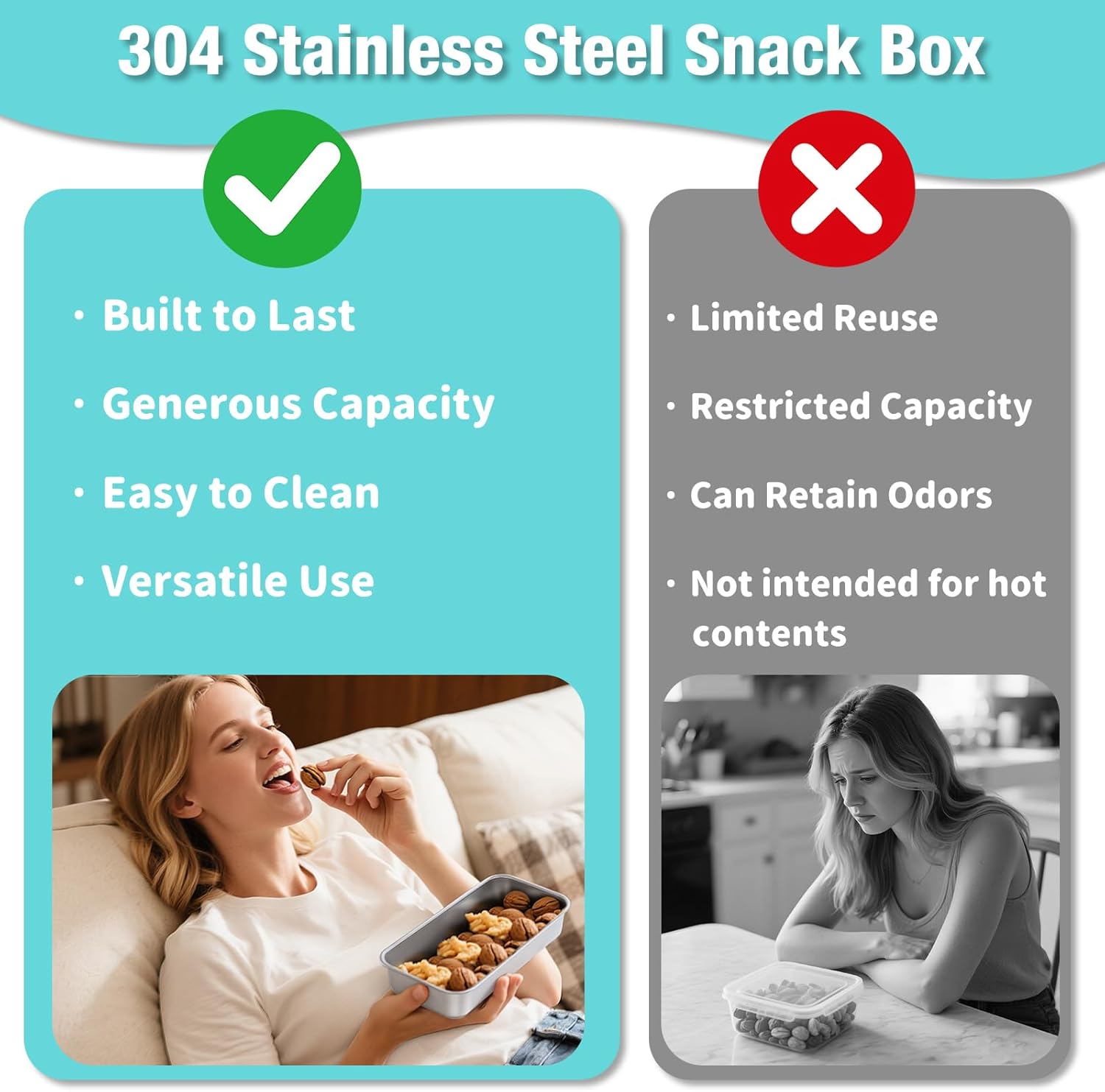 - Full 6-Piece Set: Your all-in-one solution for organized meals on the go. This set includes 2 double-compartment snack containers, 2 single-section lunch boxes, and 2 leakproof salad dressing cups. Perfect for adult meal prep, picnics, or office meals