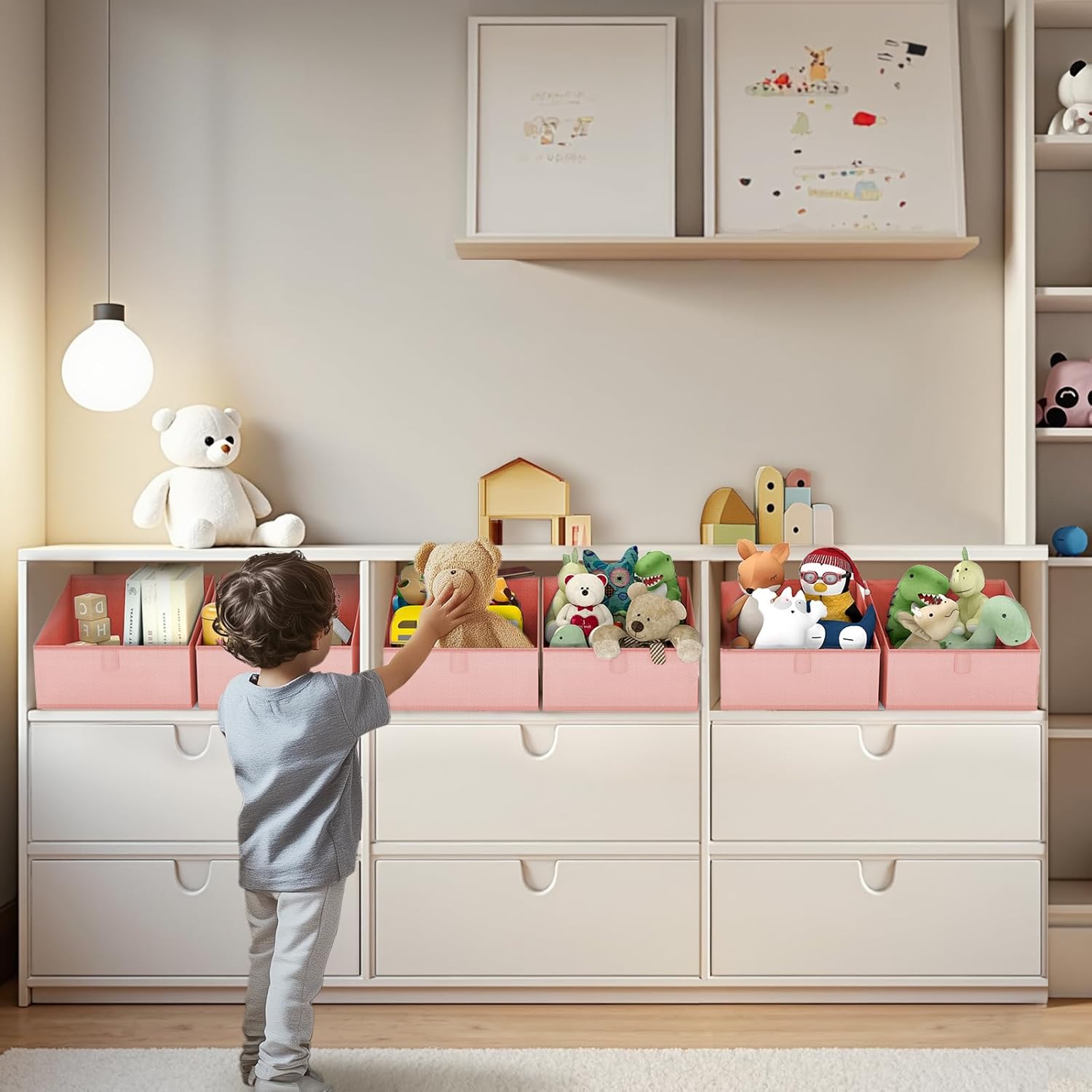 DIMJ Closet Storage Bins 8 Pack - Fabric Trapezoid Closet Organizer Bin, Foldable Storage Baskets for Shelves, Closet Shelf Organizer, Clothing Storage Box for Toys, Books, Towel, Clothes, Pink