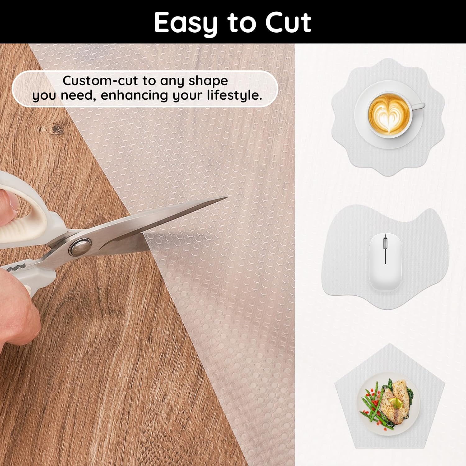 - 【Easy to Trim】Size: 11.81"W x 196.85"L x 0.03"T. The kitchen cabinet liner can be freely cut into different shapes with scissors. Customize it to fit unique drawer, cabinet, or shelf sizes, making it both practical and neat for your space.