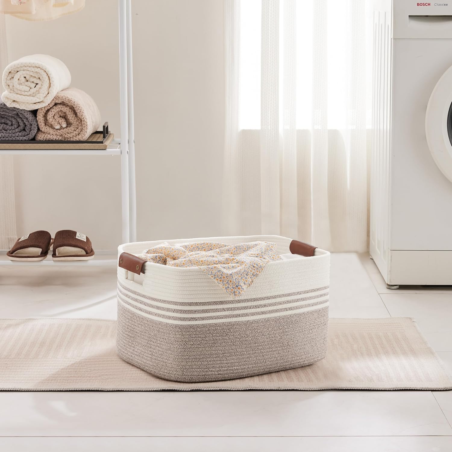 - DURABLE & HOME-FRIENDLY: Natural cotton rope weaving craft. The woven basket is crafted from high-quality cotton thread, making it sturdy and durable for long-term use. The SunNewt Large rectangular basket has no sharp edges, securing family safety and suitable for households with kids, the elderly , and pets
