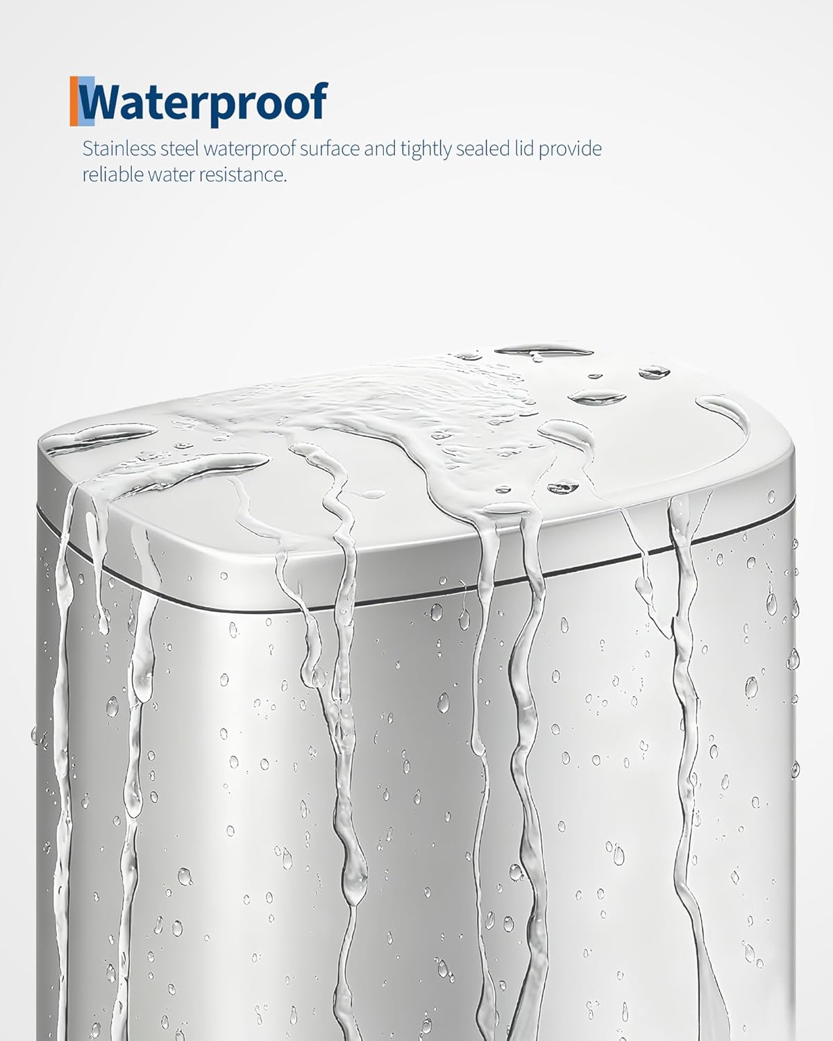 - [MINIMAL FORM, EXQUISITE DETAIL] – The Garvee stainless steel kitchen trash can boasts a fingerprint-resistant finish that wipes clean in seconds. The thick lid with extended overhang lip conceals bag edges for a seamless profile, while anti-slip rubber feet keep the bin firmly in place on tile, hardwood, or low-pile carpet