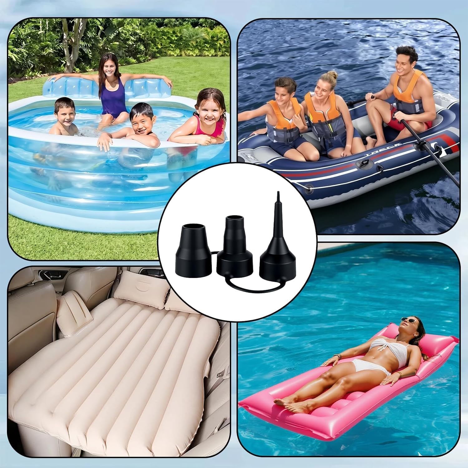 - 【3-in-1 Combination】Air pump nozzle replacement designed with 3 sizes nozzles head connected together, it respectively in small, medium and large size mouth. Three different diameter sizes are allowing for flexibility in usage across various occasions and needs.