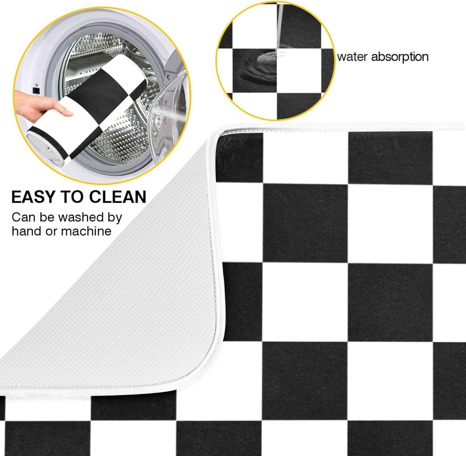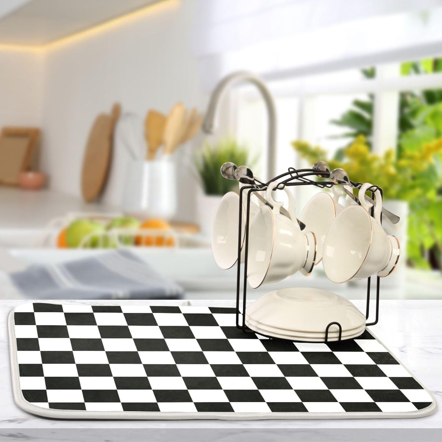 Black White Chessboard Dish Drying Mat for Kitchen Countertop 18x24 Plaid Checkered Rectangle Large Drying Mat Reusable Quick Dry Dish Sink Absorbent Mats Easy Clean Decorative Home Essentials