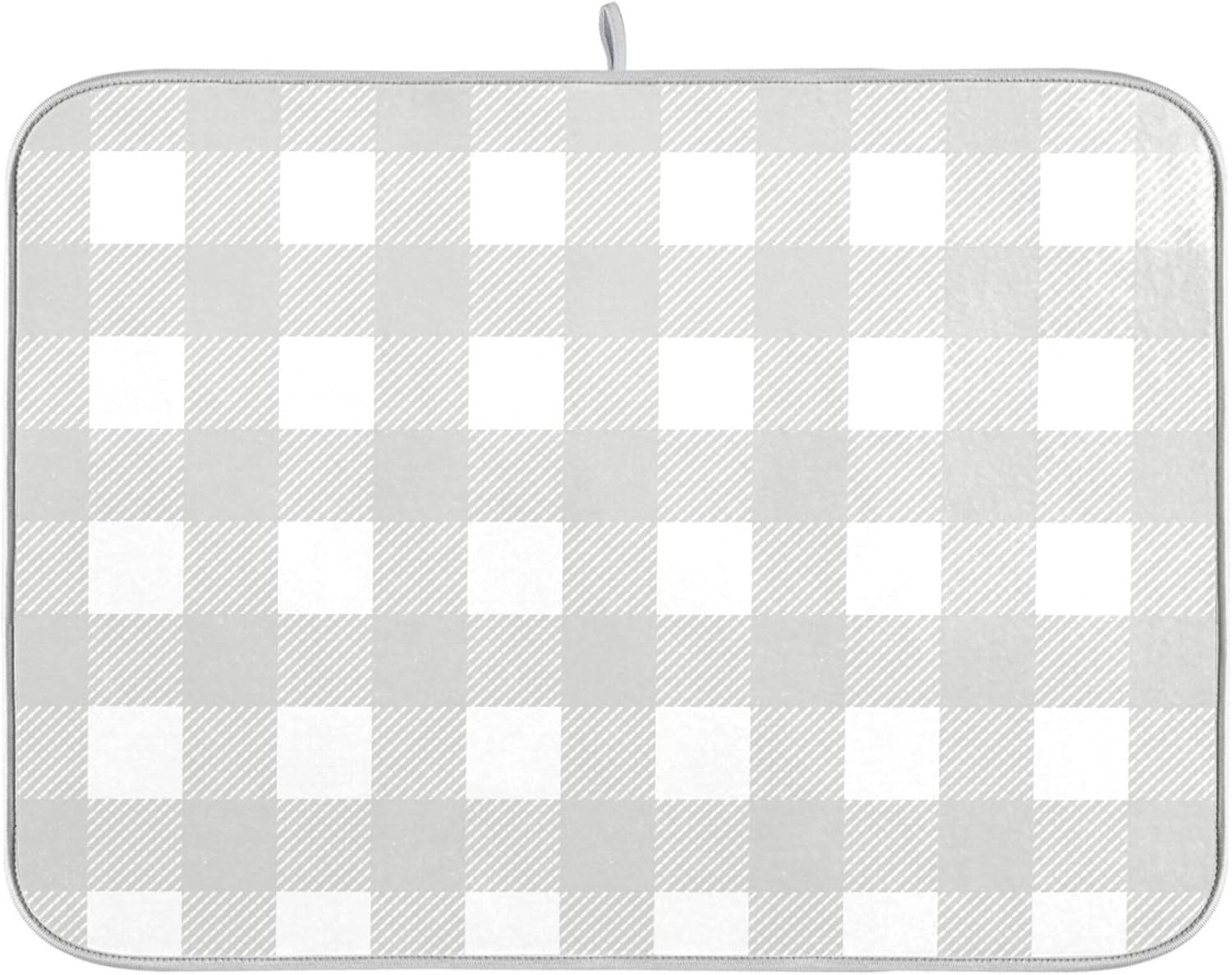 Buffalo Plaid Gray White Dish Drying Mat for Kitchen Countertop 18x24 Chessboard Rectangle Large Drying Mat Reusable Quick Dry Dish Sink Absorbent Mats Dishwasher Easy Clean Decorative Home Essentials