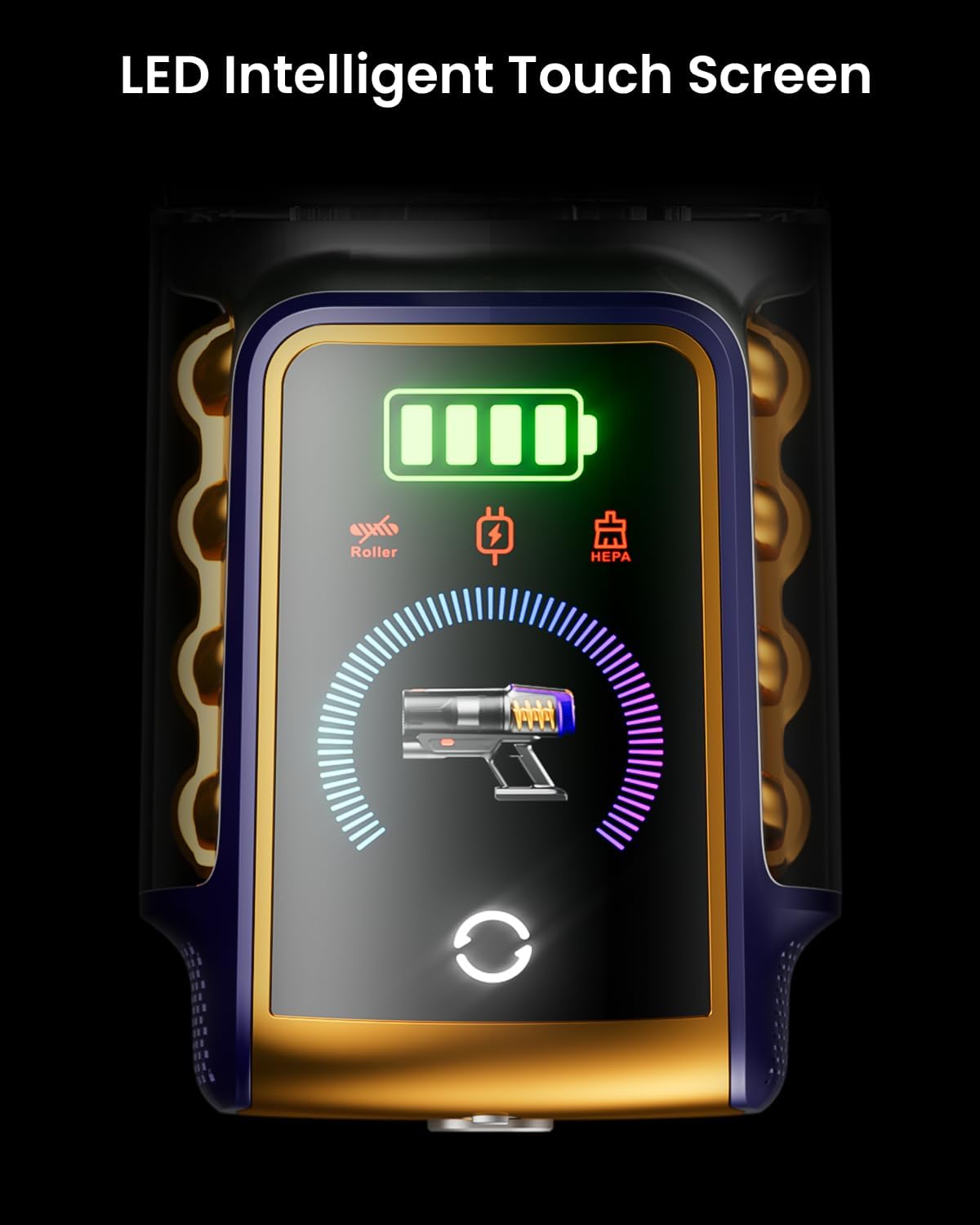 - 【High-Definition Color LED Display】 The vacuum's responsive sensor system supports touchscreen operation to adjust suction power. Its clean, high-resolution design with oversized icons is exceptionally user-friendly for those with impaired vision and older users. The smart panel displays remaining battery life in real time, helping you plan cleaning schedules efficiently. Should any issues arise, alerts will promptly notify you to perform vacuum maintenance. Experience the convenience and enjoyment of smart cleaning!