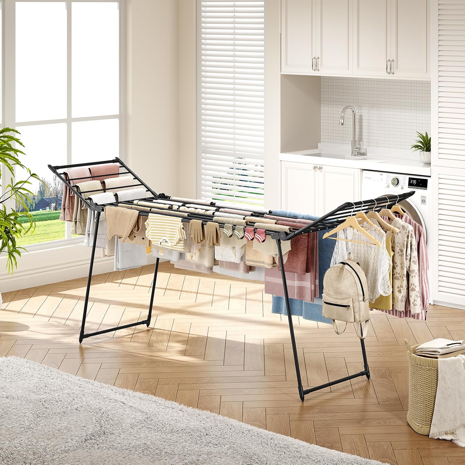 - Ready to use: This drying rack comes fully assembled. Just unpack and unfold it, and it's ready to use—saving you time on setup, so you can easily hang your clothes to dry.