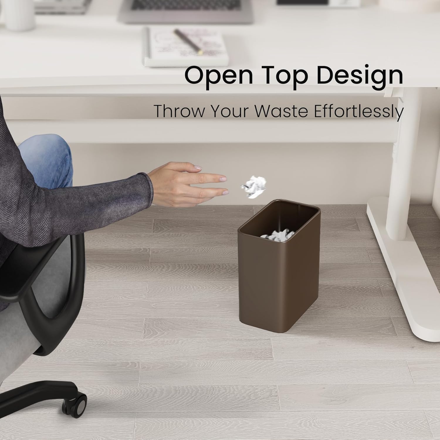 - Compact Size for Tight Spaces: With dimensions of 8.86''L x 5.51''W x 10.16''H, this 2.1-gallon (8-liter) brown trash can is purposefully small, perfect for limited spaces where larger bins may not fit. Ideal for light use, itβs a discreet waste solution for bathrooms, under sinks, under desks, nside cabinets, and narrow areas, ensuring you make the most of every inch