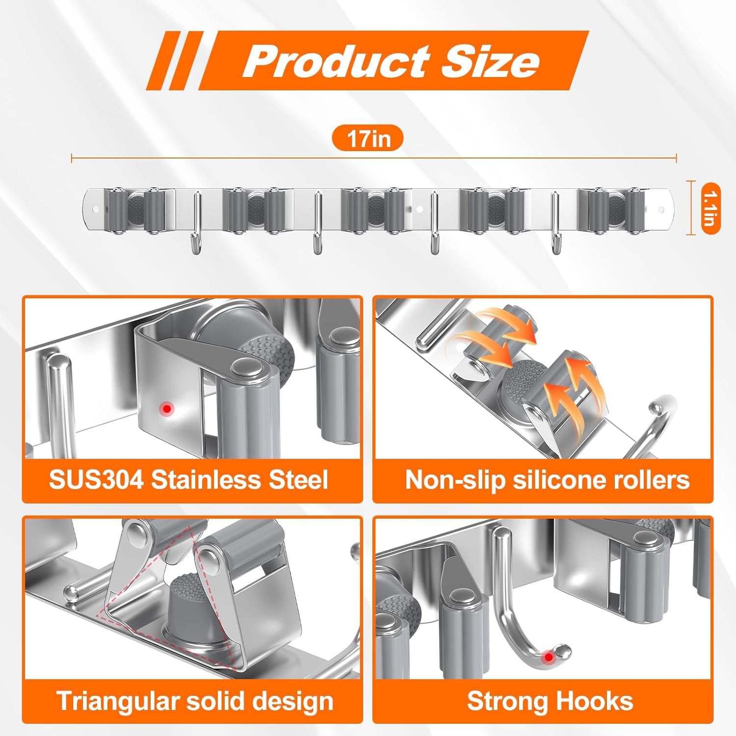 - 【Effortless Tool Handling & Capacity】Designed for ultimate convenience, this broom and mop holder features flexible grippers that easily accommodate handles of various sizes. Simply push your mop or broom handle into the clips after cleaning – no fuss. The wall mount for brooms and mops utilizes sturdy broom hooks wall mounted and a mop wall holder system. This broom mop holder has a total weight capacity suitable for household and garage tools, making it a practical broom and mop organizer wall hanging.