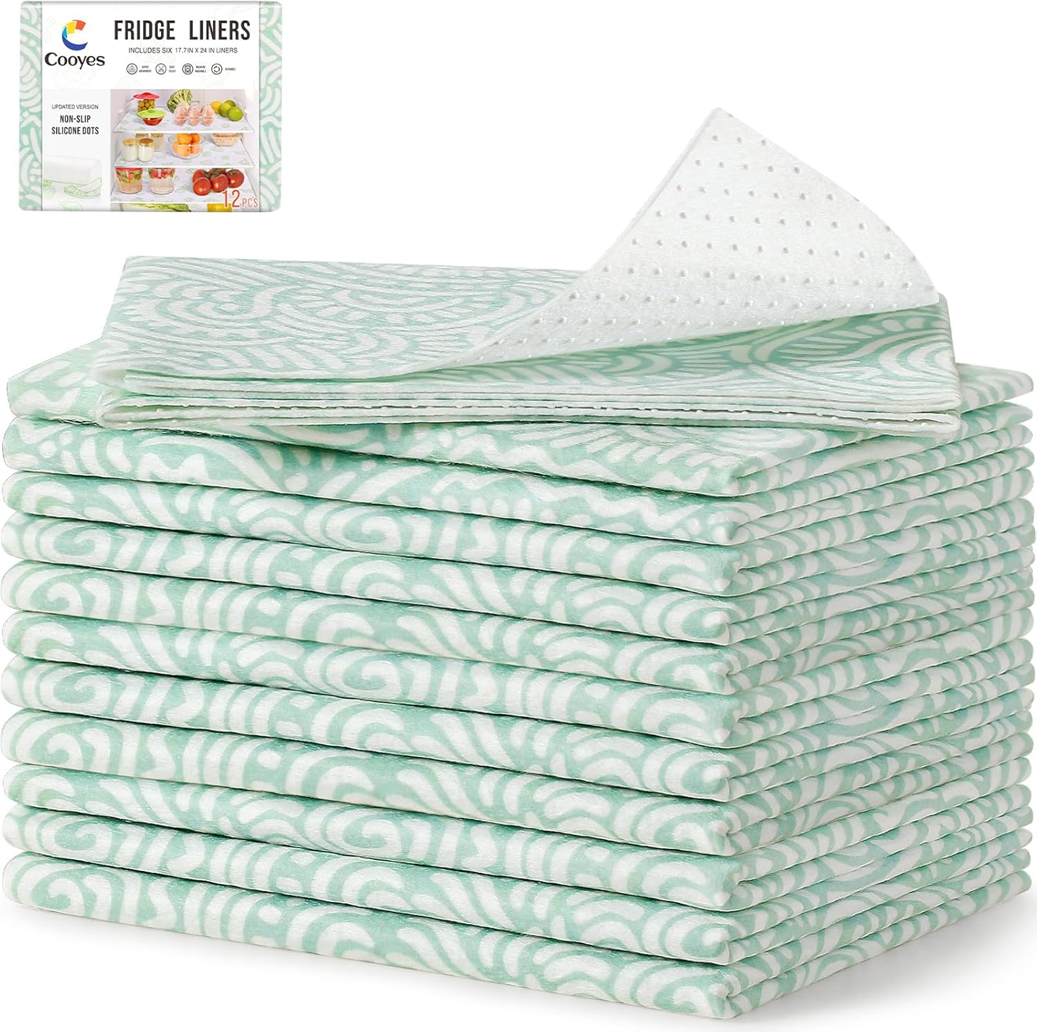 Cooyes 12 Pack Refrigerator Shelf Liners for French Door Fridge, 17.7" × 36" Extra Large, Non-Slip Fridge Mats Machine Washable, Refrigerator Drawer Liner for Glass Shelves Kitchen Cabinet