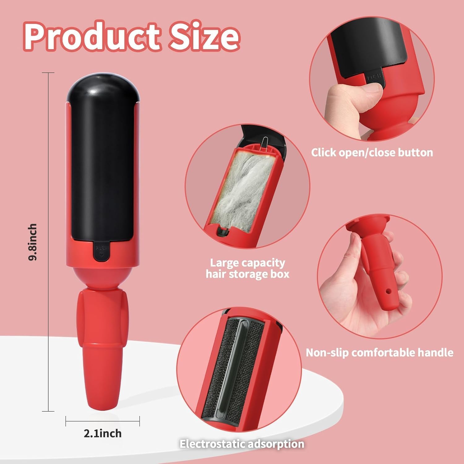 Dog Pet Hair Remover Roller - Reusable Lint Roller Pet Hair Removal Tool for Dog&Cats - Portable Sticky Lint Roller for Clothes, Couch, Bed, Car, Furniture – Travel-Friendly (Red/Black)