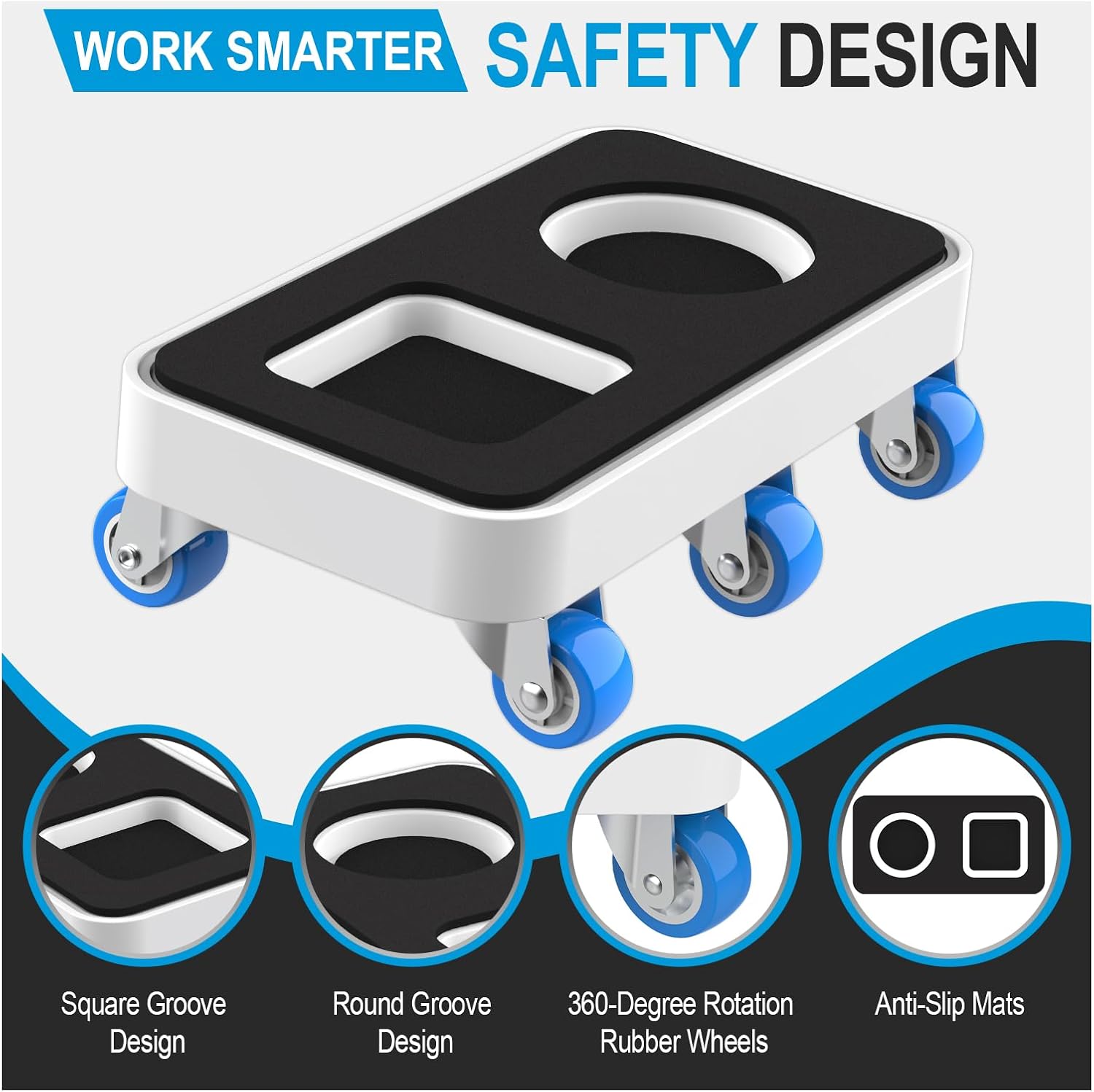 - 【Dual Groove Design】New upgraded furniture dolly with dual-groove design, featuring both square and round grooves complemented with non-slip pads. This design prevents furniture from slipping during movement, ensuring the safety of both your belongings and users. It accommodates various types of furniture legs, including square, round, and flat-bottomed legs