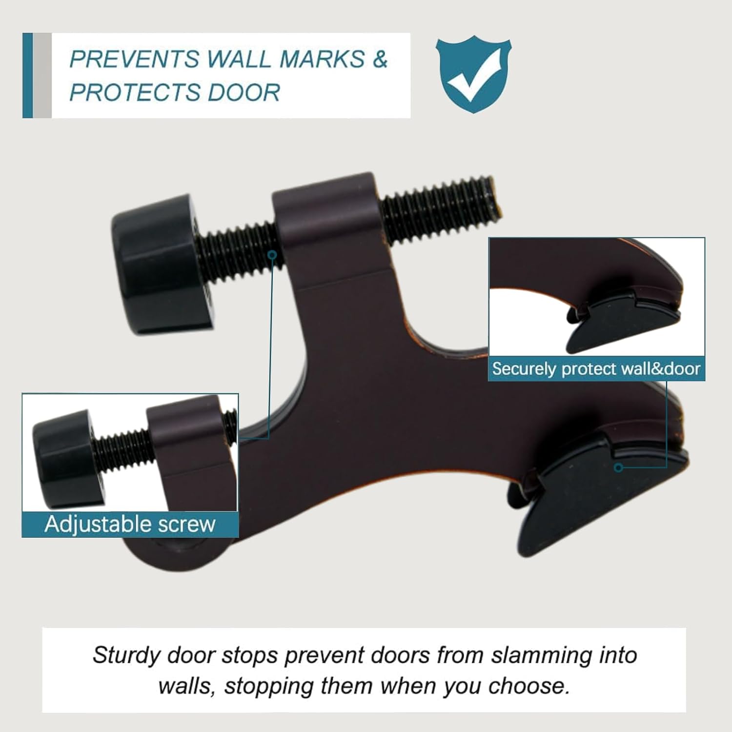 - Prevents Door And Wall Damage. Sturdy door stops prevent doors from slamming into walls, Protect your doors from damage and save yourself from repair bills.