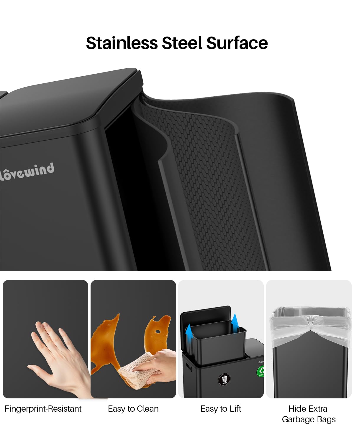 - Stainless Steel Construction: Lovewind double trash can is made of high-quality stainless steel, which is durable, easy to clean, and anti-fingerprint, making it an ideal choice for your kitchen
