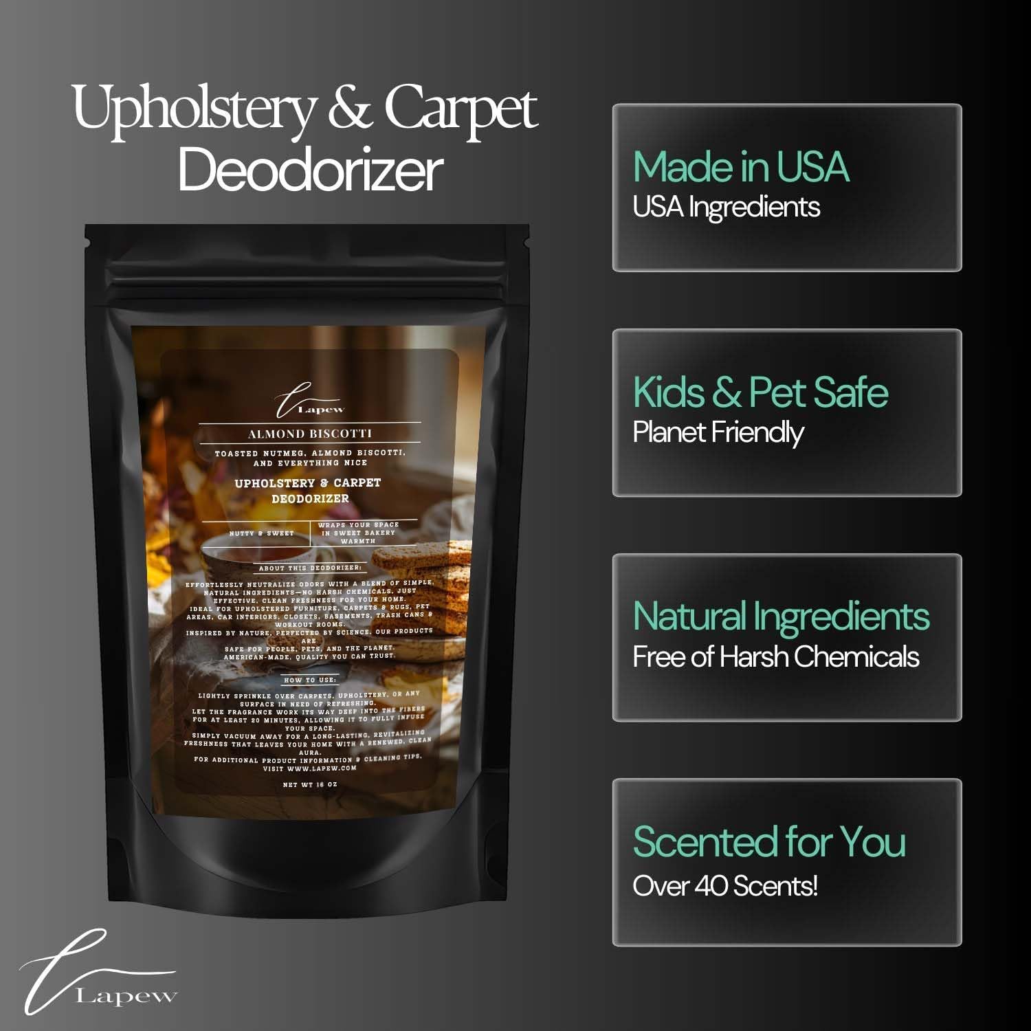 - Powerful Odor Eliminator for Strong Odors: Say goodbye to stubborn smells with the Lapew Nutmeg & Spice Carpet Freshener Powder, specially formulated to tackle everyday room odors.