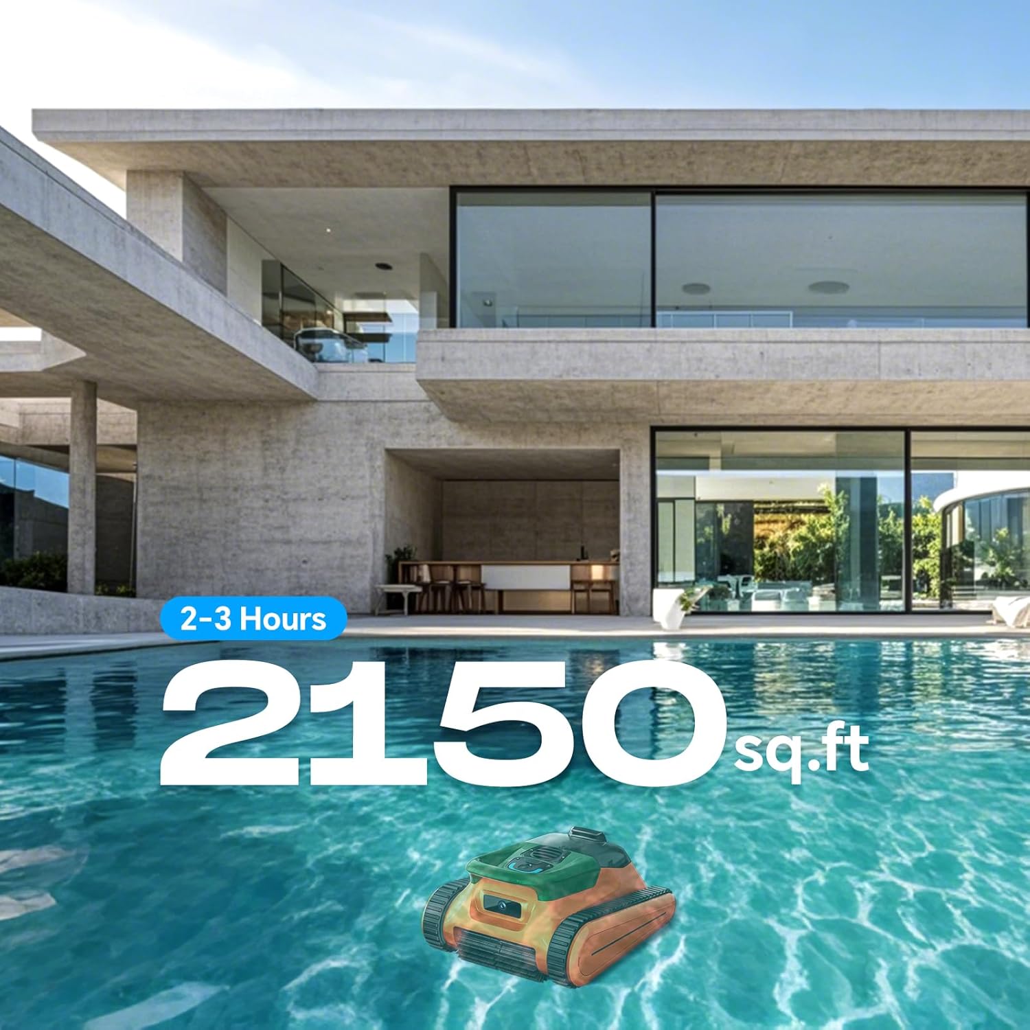 - Advanced Performance & Comprehensive Pool Cleaning:Designed for inground and above-ground pools, this robotic pool cleaner efficiently scrubs floors, walls, and waterlines. Its high-capacity filter basket captures fine particles and large debris, ensuring crystal-clear water. Built for all pool surfaces, including vinyl, concrete, tile, and fiberglass, it provides seamless cleaning for pools up to 2,150 sq. ft.