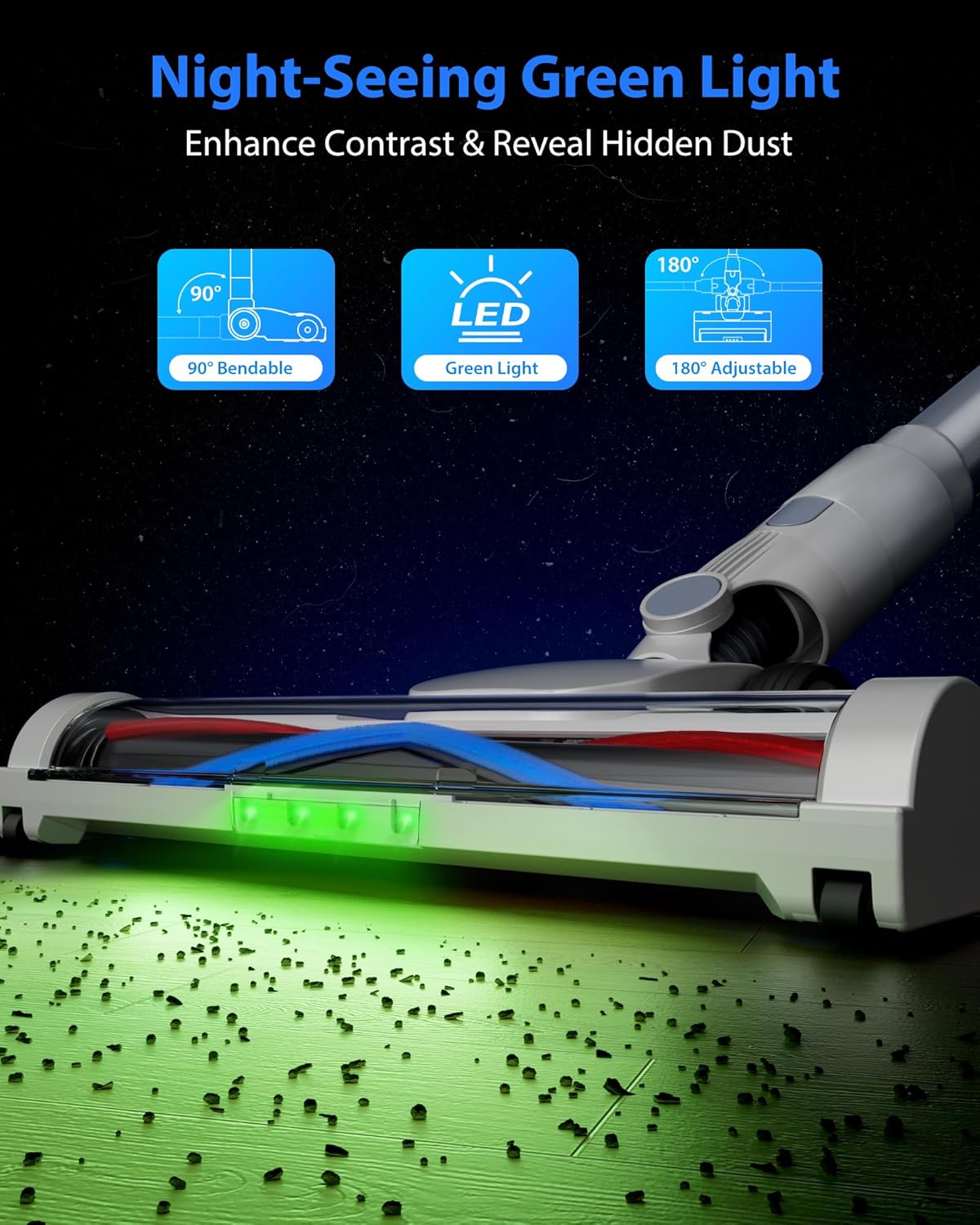 - ššš¢šš§šš¢šš¢š šš«ššš§ šš¢š š”š ššØš« šš„ššš«šš« šš„ššš§š¢š§š - The floor brush's 520nm green LED exposes hidden dust while reducing glare. Its adjustable head reaches tight spaces, eliminating furniture-moving hassles.