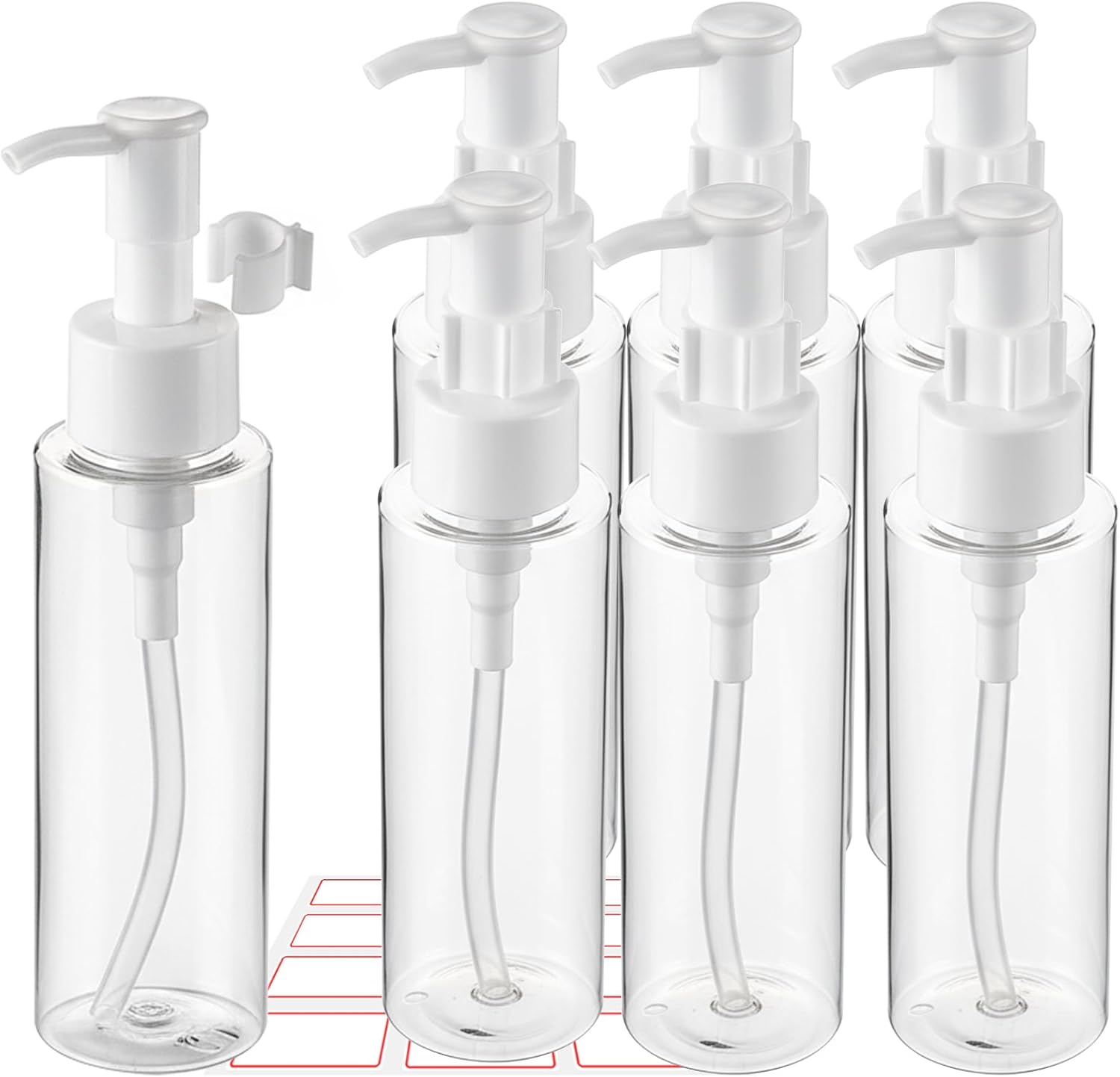 7 Pack 3.4 Oz/100ml Travel Pump Bottle TSA Approved Empty Plastic Pump Bottles Dispenser Portable Refillable Container Clear Lotion Dispenser Bottle for Shampoo Shower Gel