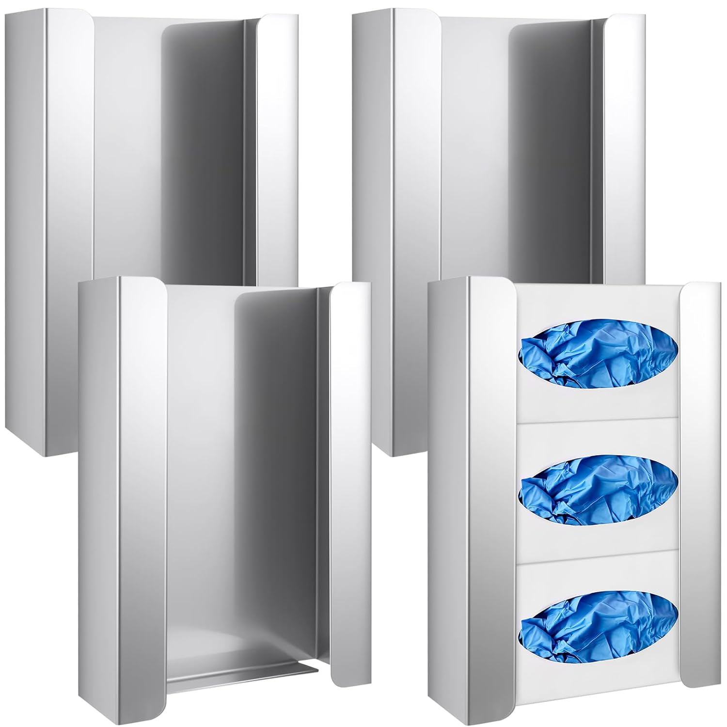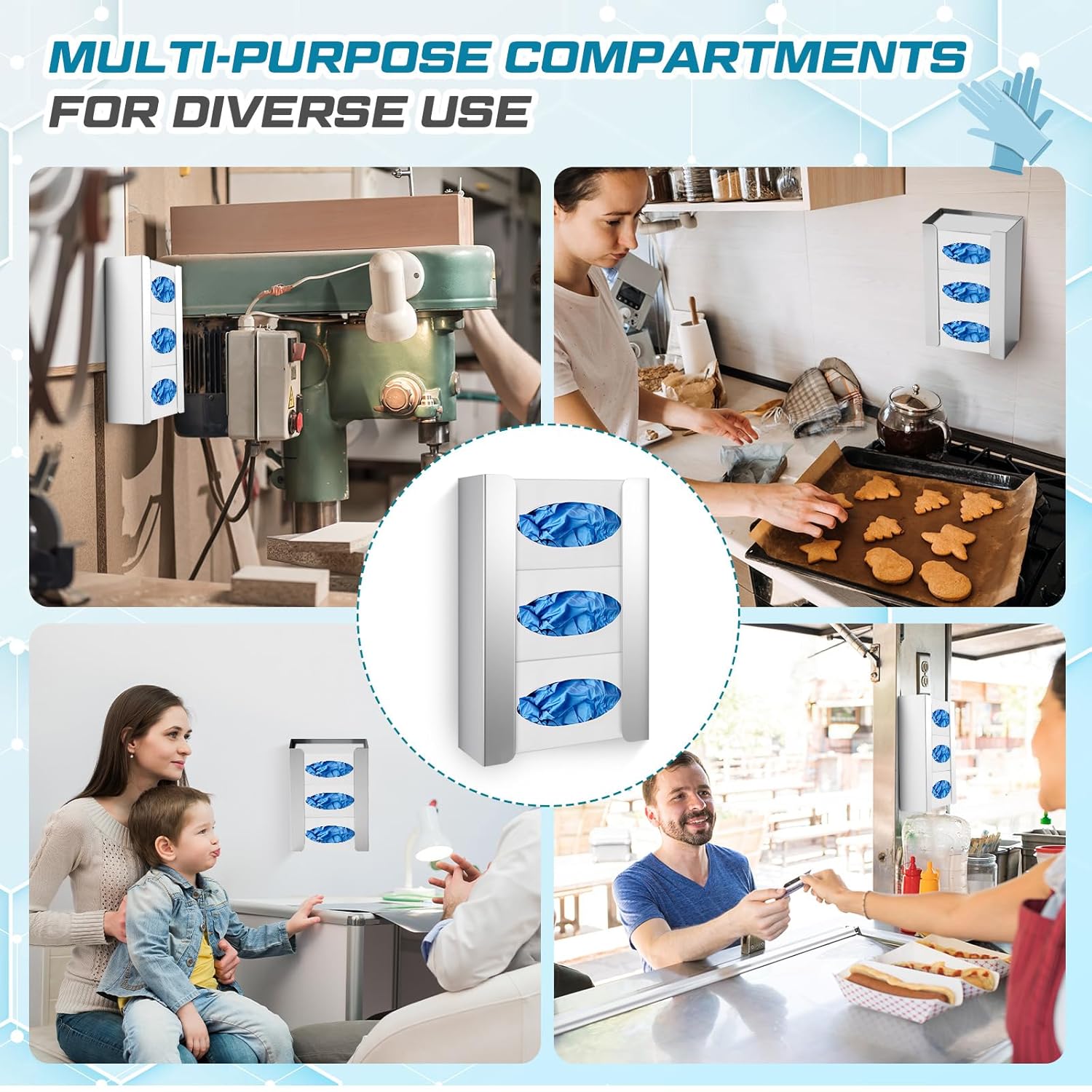 Blulu 4 Pack Glove Box Holder/Dispenser Stainless Steel Triple Wall Mounted Glove Box Organizer, 9.84" H x 14.96" W x 3.74" D