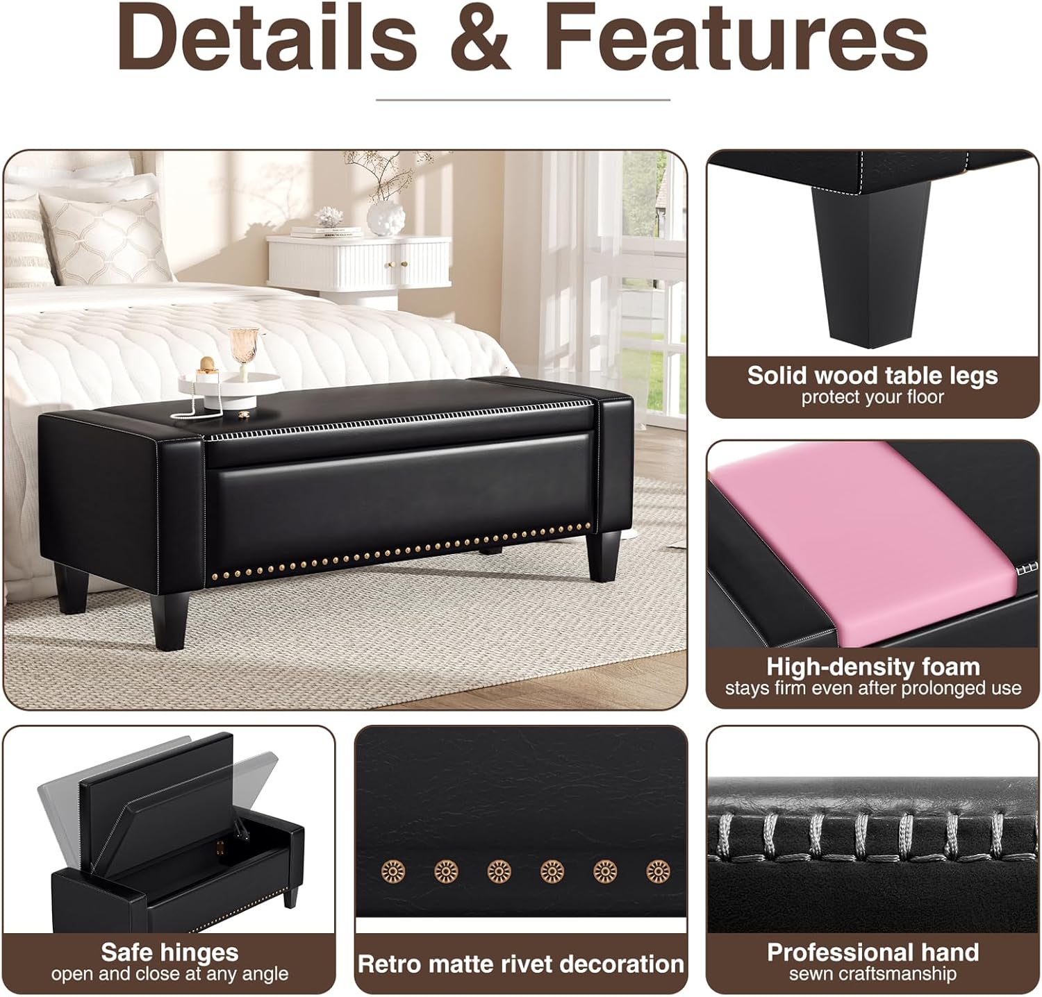 - Sturdy & Reliable Construction: This durable leather bench for bedroom is supported by wood legs and built for exceptional stability. The high-density foam padding provides a comfortable and firm seat, while the sturdy frame can hold up to 330 lbs, offering a reliable seating solution