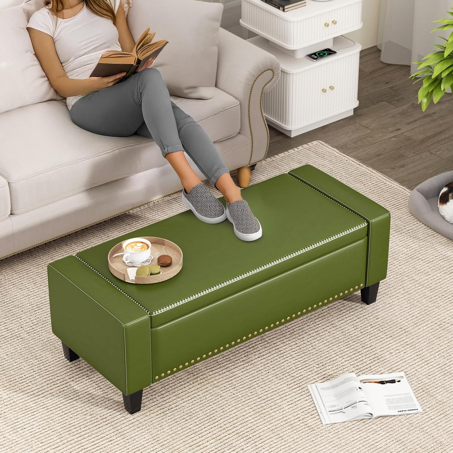 48.8" Storage Ottoman Bench Green | Faux Leather Bedroom Bench with Lift Top for Living Room & Bed End