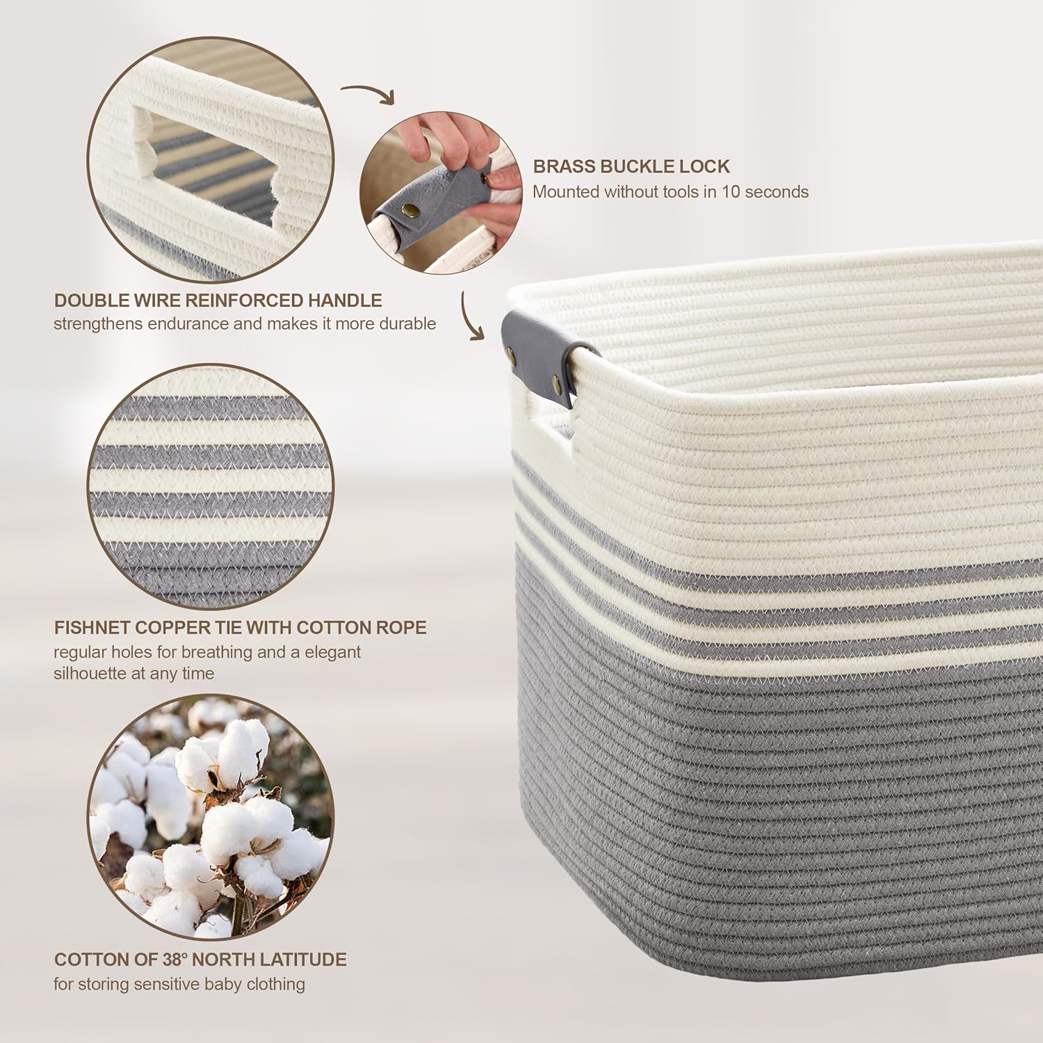 - DURABLE & HOME-FRIENDLY: Natural cotton rope weaving craft. The woven basket is crafted from high-quality cotton thread, making it sturdy and durable for long-term use. The SunNewt Large rectangular basket has no sharp edges, securing family safety and suitable for households with kids, the elderly , and pets