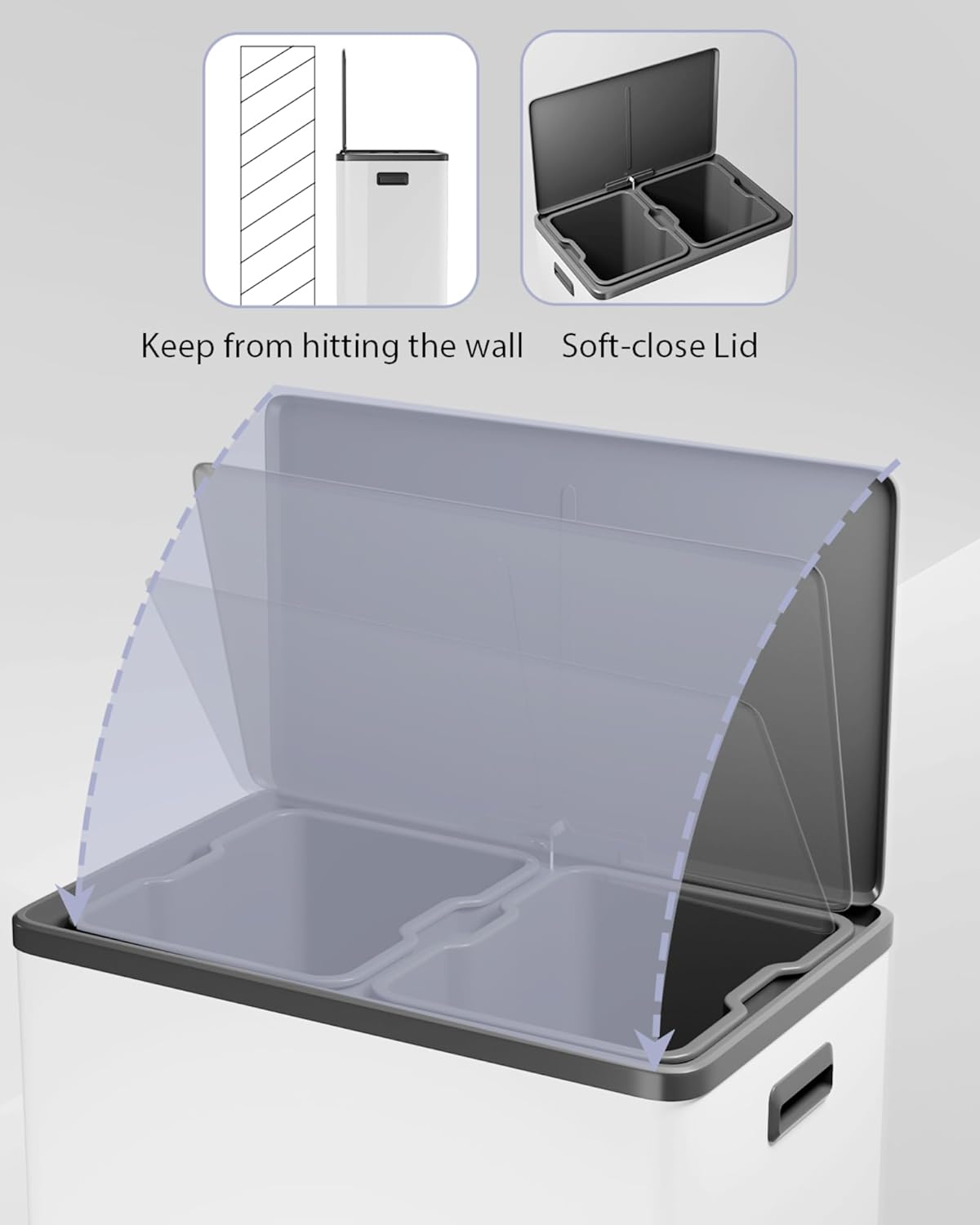 - Effortless Dual Sorting: 2 removable inner buckets (2 x 8 gallons/3L each) let you separate recyclables, compost, or general waste in one sleek unit. Perfect for dry/wet waste sorting.