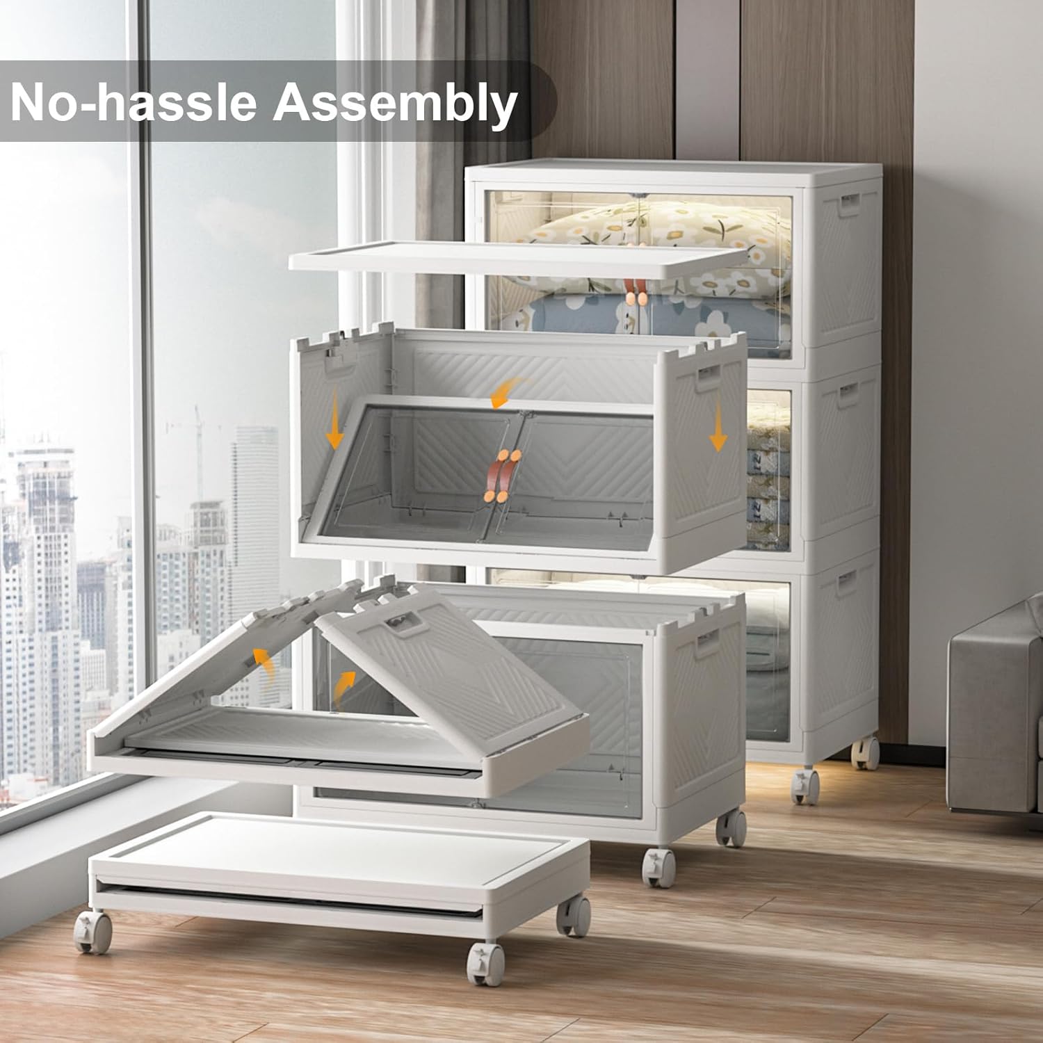 - 【Smooth Mobility with Locking Wheels】: Easily move your storage wherever you need it. These stackable storage bins with wheels feature four smooth-rolling casters, including two locking brakes, keeping your bins stable yet mobile — great for bedrooms, dorms, or offices.