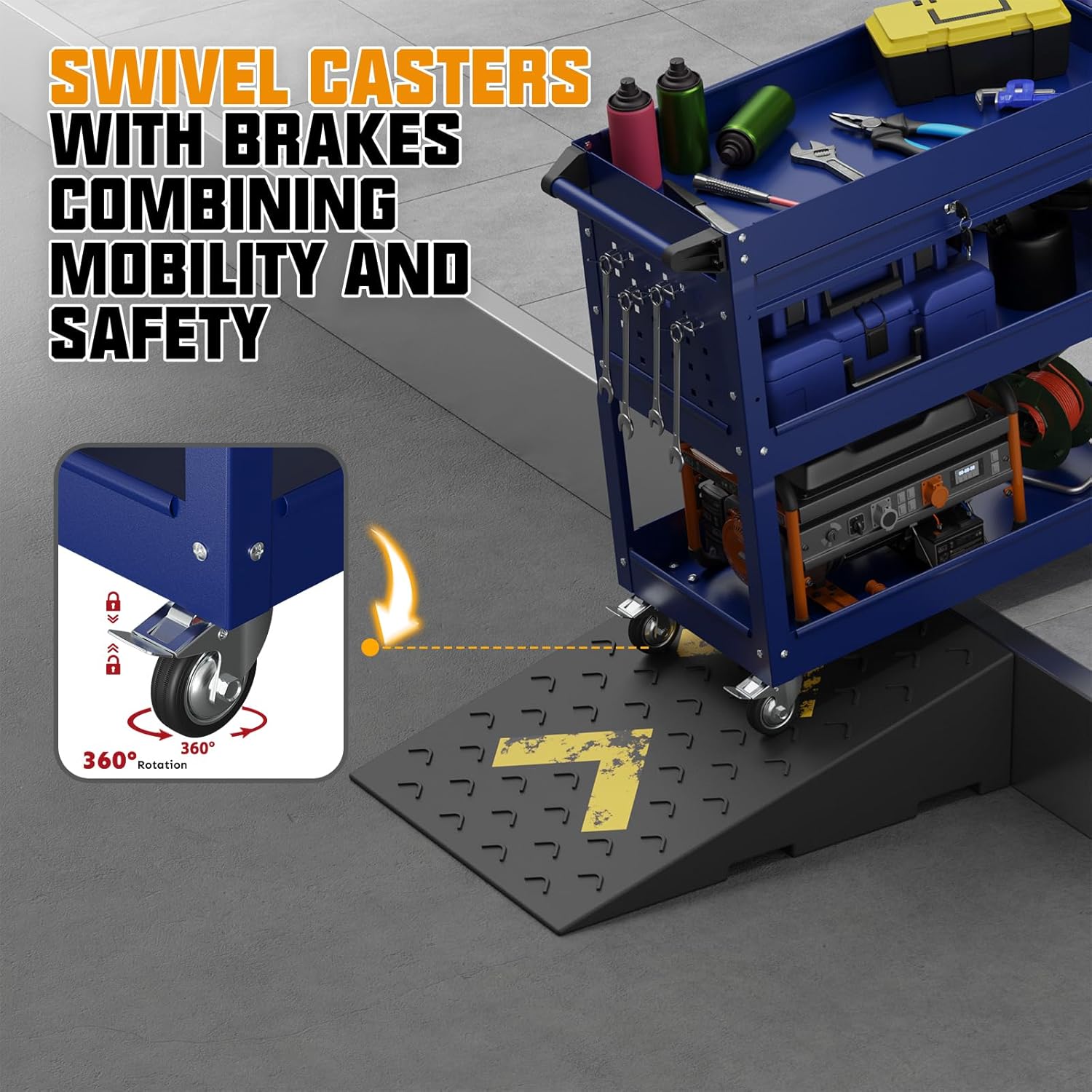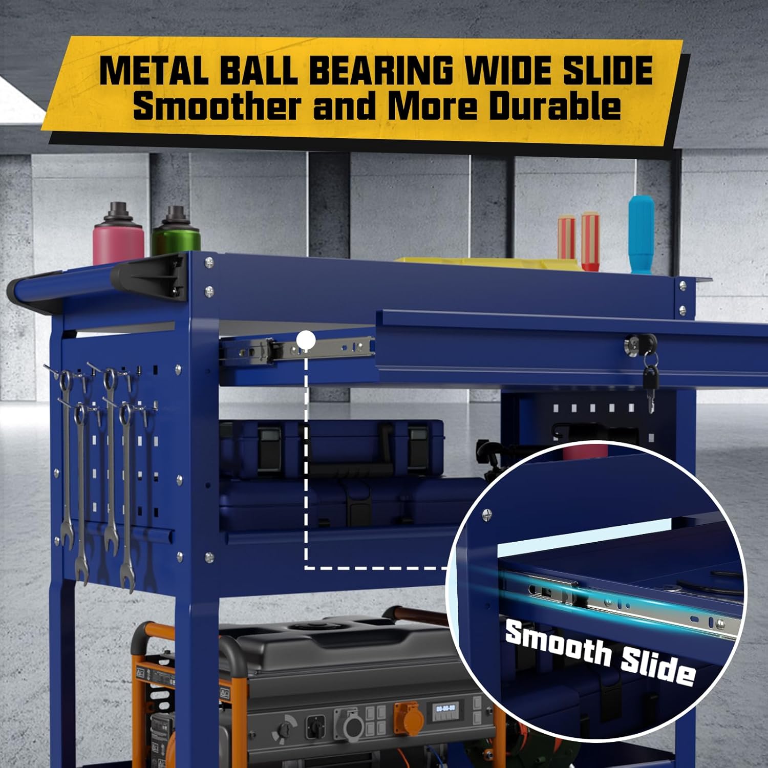 - 【Spacious Storage】This tool cart features 3 tiers of storage space, lockable sliding drawers, and extra tool slots on both sides to organize various tools neatly. Thanks to its high-strength body, it supports a maximum load of 450 pounds, easily handling heavy tools or boxes.capacity of 450 pounds.