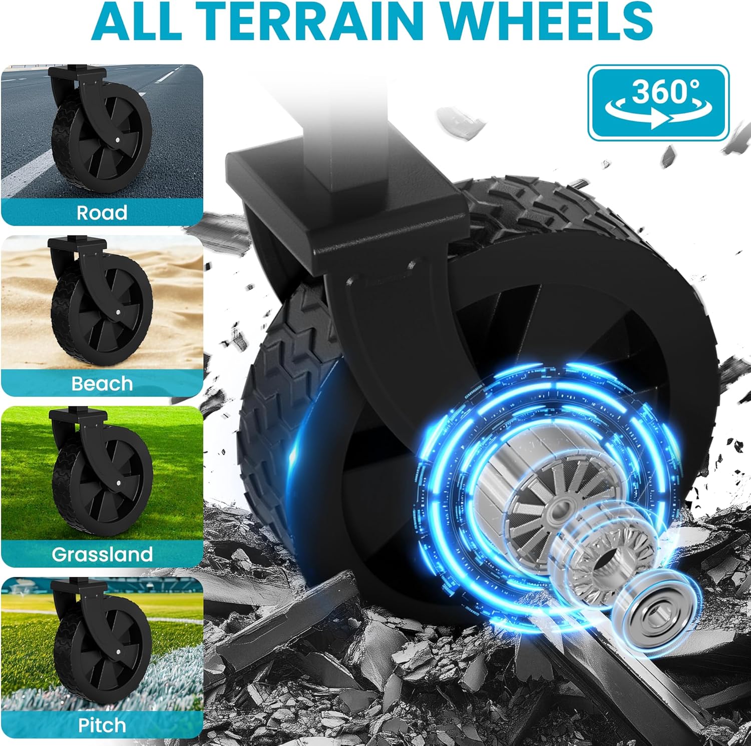 - 【Manoeuvrability Foldable Wagon】Equipped with two 360° swiveling front wheels,this wagon glides smoothly not just on regular roads, but also tackles tricky surfaces such as meadows and gardens with ease.The telescopic handle adjusts to different heights, ensuring a comfortable grip for users of all statures.